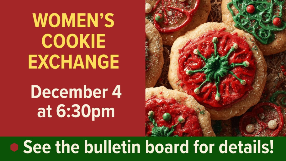 Come on out on December 4 at 6:30pm for a night of fellowship, and bring 4 dozen of your best cookies to exchange and pack for our homebound folks. Make a copy of your...